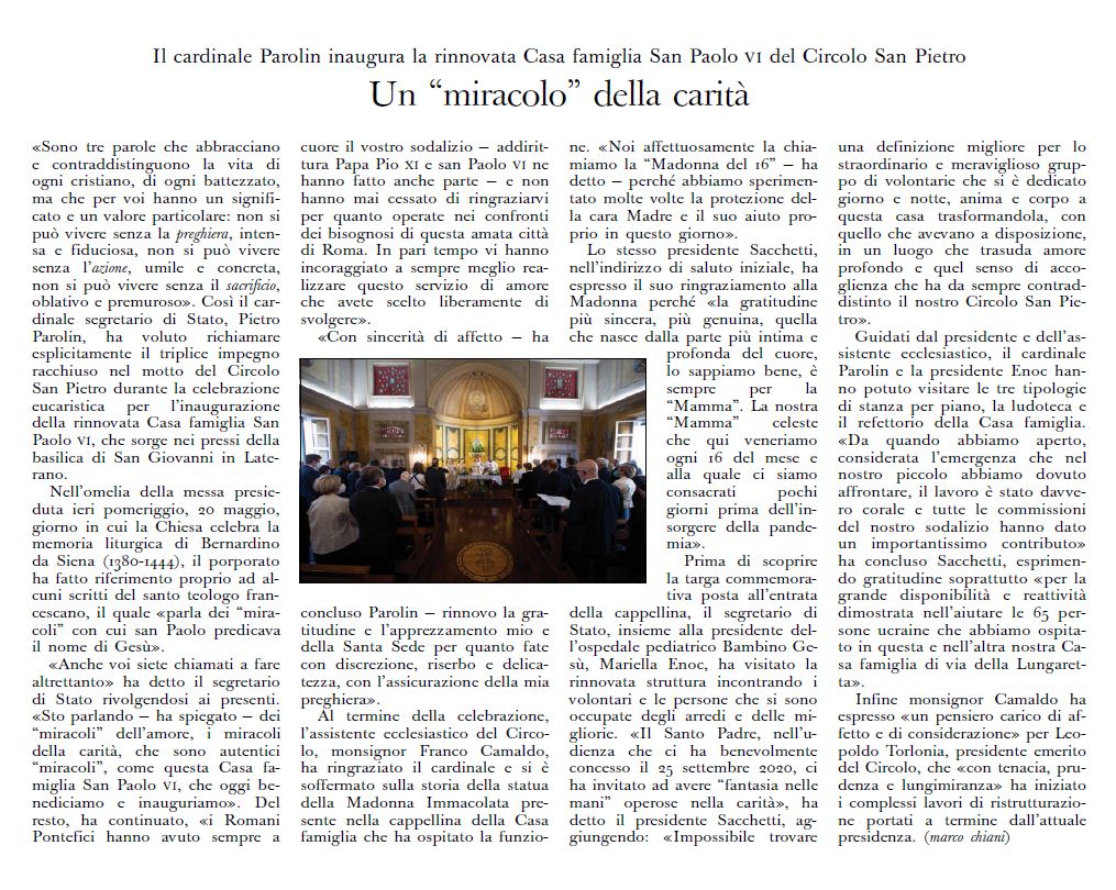 Il Circolo di San Pietro inaugura la Casa Famiglia "S. Paolo VI"